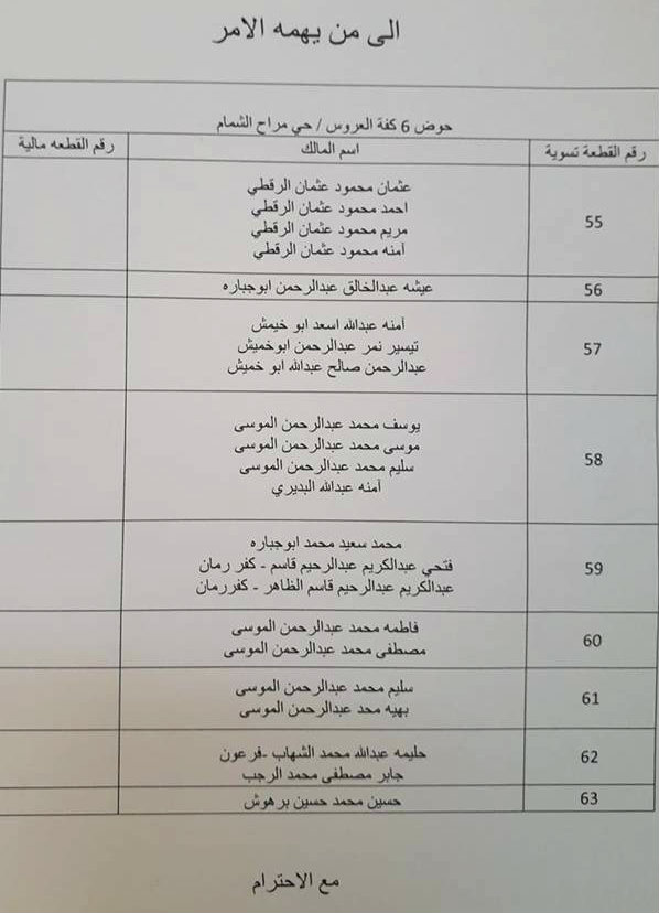 إعلان من مكتب تسوية كفر اللبد