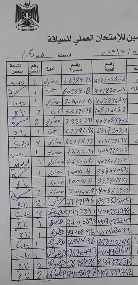 نتائج امتحان السياقة العملي بطولكرم