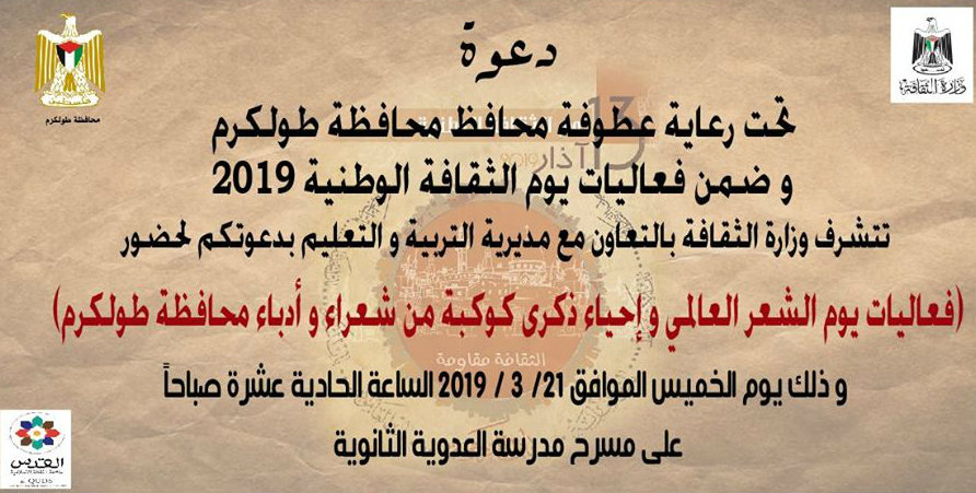تحت رعاية محافظة طولكرم وضمن فعاليات يوم الثقافة الوطنية 2019