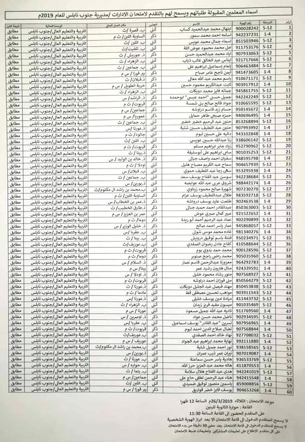 إعلان للمتقدمين لوظيفة مدير مدرسة بنابلس
