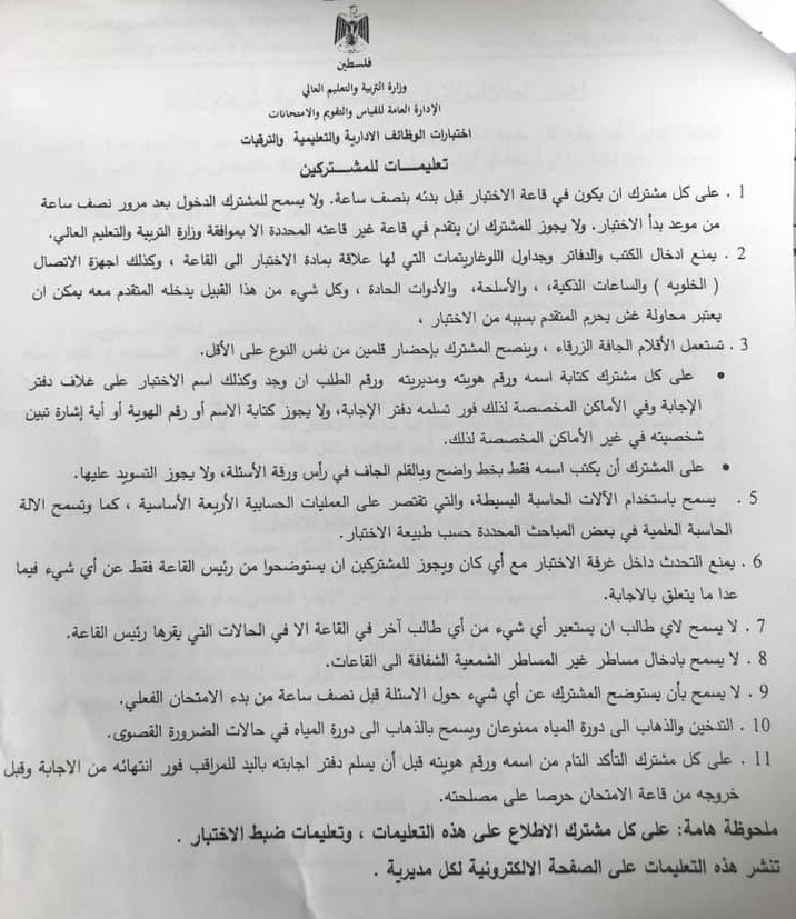 وزارة التربية والتعليم تنشر تعليمات للمتقديمن لامتحانات الوظائف الإدارية.