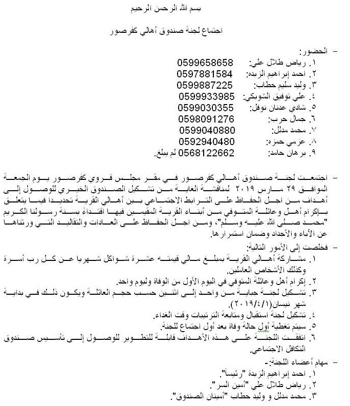 مخرجات اجتماع لجنة صندوق أهالي كفر صور