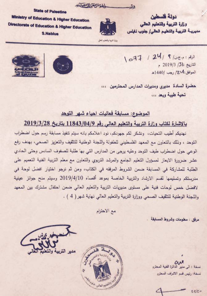 دعوة للمشاركة مسابقة رسم بمدارس جنوب نابلس