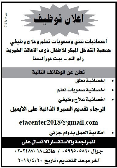 وظيفة في طولكرم بدوام جزئي