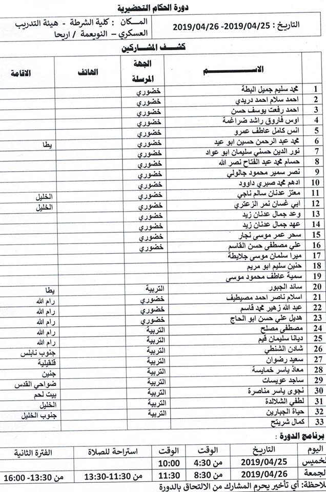 دورة حكام اليد في موعدها الخميس في كلية الشرطة أريحا، يرجى من المسجلين في كشف الدورة التواجد في المكان والزمان دون تأخير.