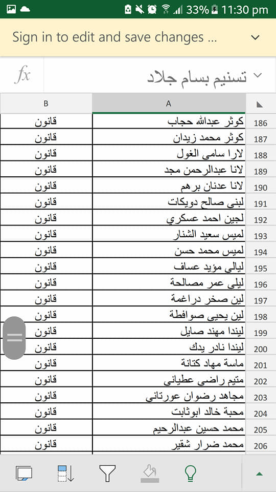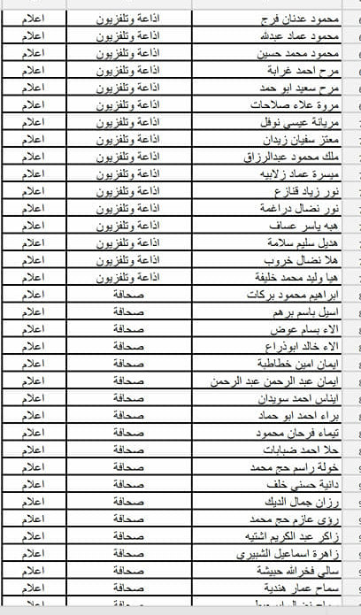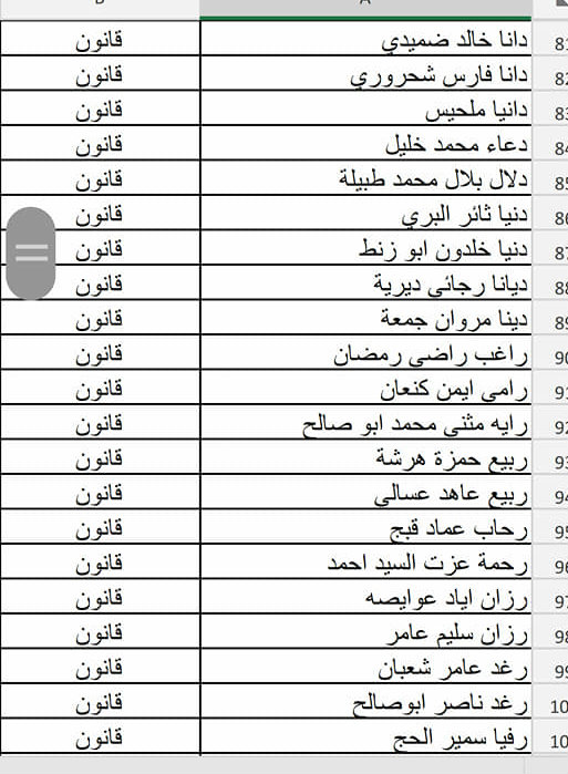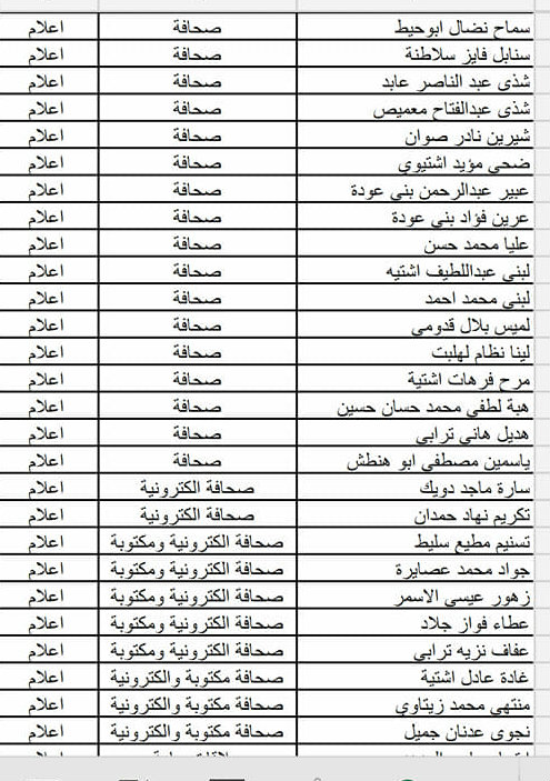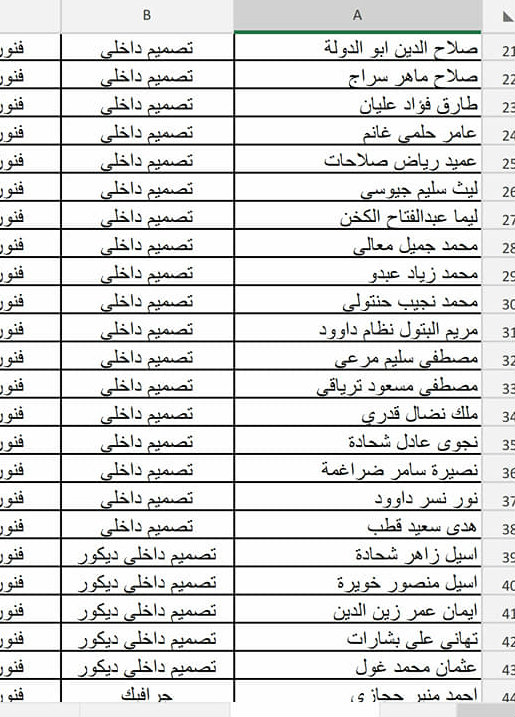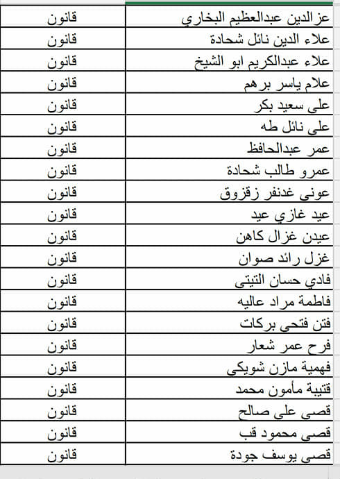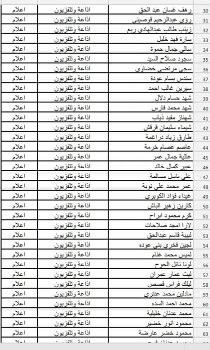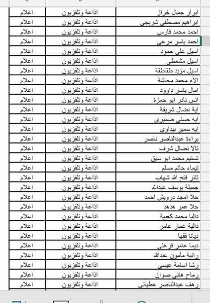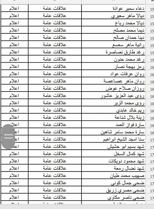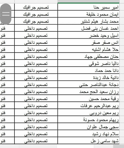 - فيما يلي أسماء الطلبة المسجلين في حفلة (الأربعاء 24.04.2019)، يرجى مراجعة الأسماء وفي حال وجود أي خلل في اسم أو تخصص أحد الطلبة، على الطالب التواصل معنا عبر حسابه الشخصي على رسائل الصفحة، وأن يرفق الرسالة بصورة وصل التسجيل أو صورة البطاقة الجامعية لتأكيد هويته وتصحيح الاسم أو التخصص.