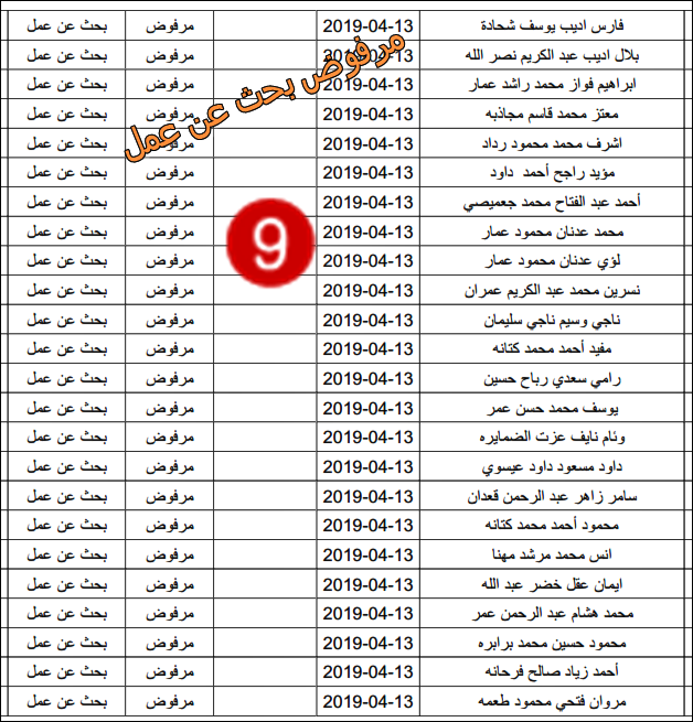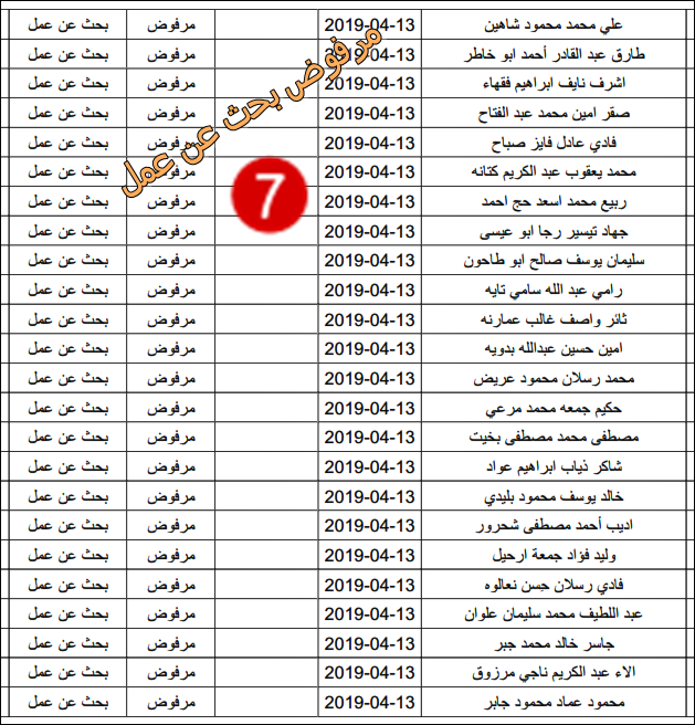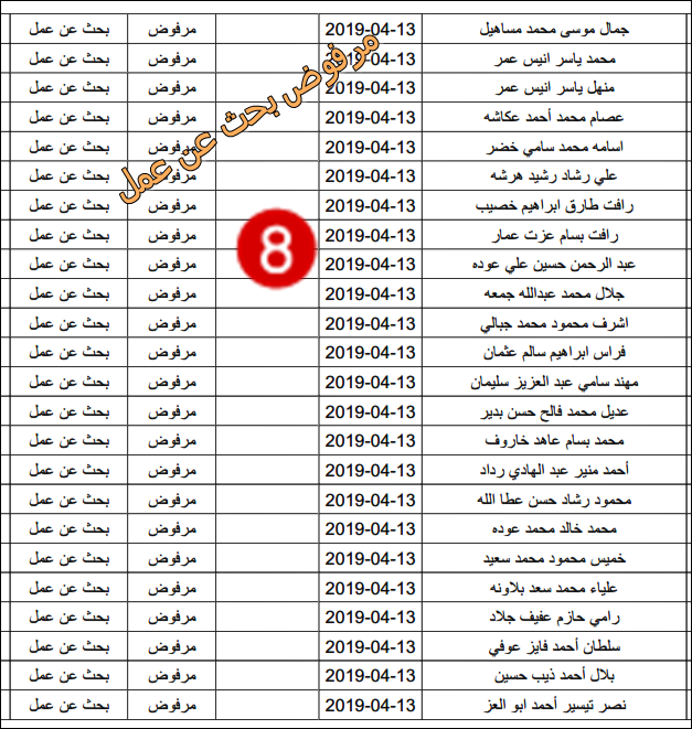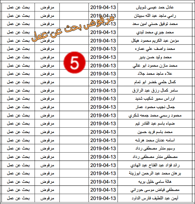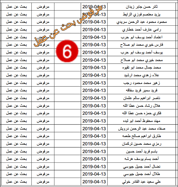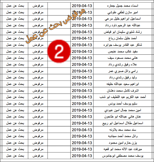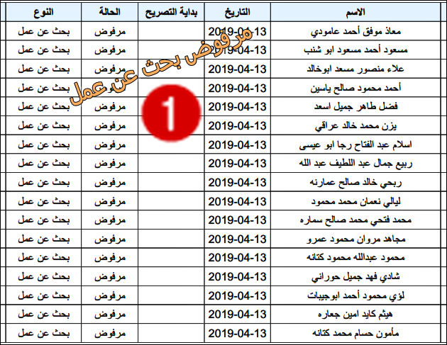 الارتباط المدني الفلسطيني ينشر قائمة بأسماء المرفوضين من نيل تصاريح البحث عن عمل.
