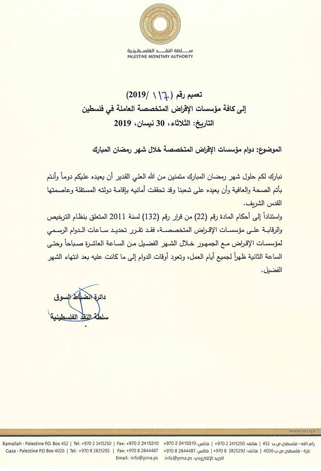 دوام مؤسسات الإقراض في رمضان