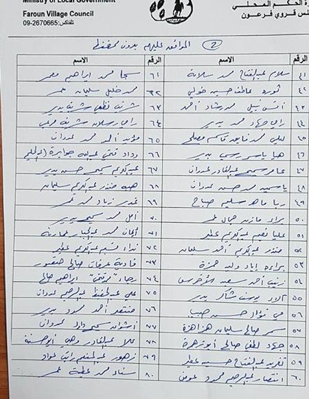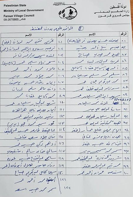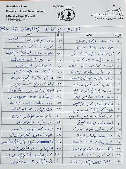 مجلس قروي فرعون ينشر قوائم أسماء من لهم تصاريح في رمضان.