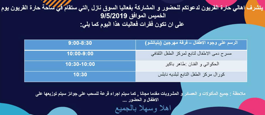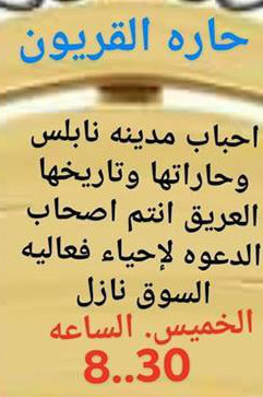 نرجو إخلاء حارة القريون من السيارات حتى الانتهاء من السوق نازل. الدخول إلى الحارة سيراً على الأقدام فقط.
