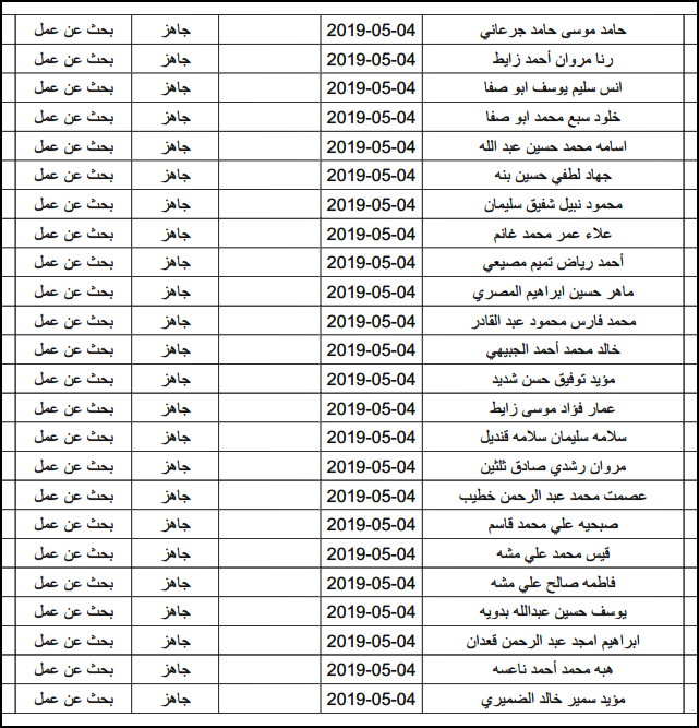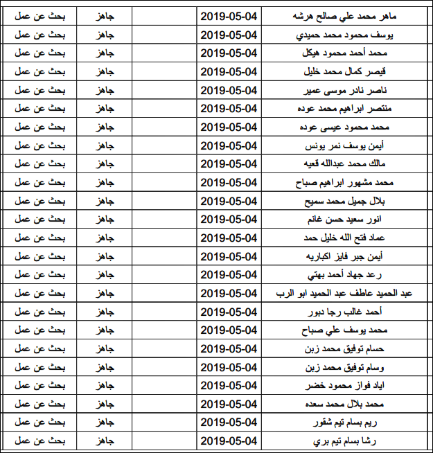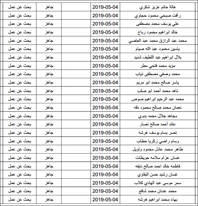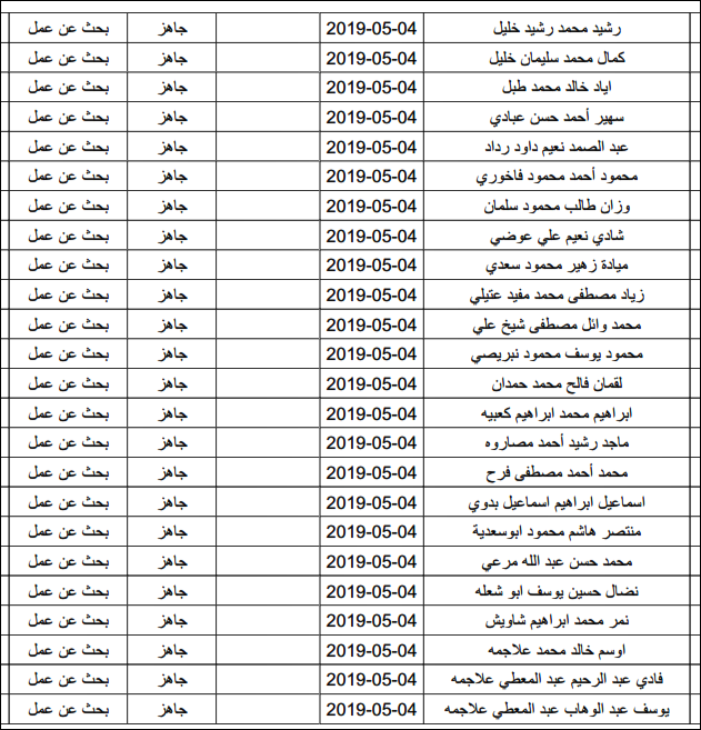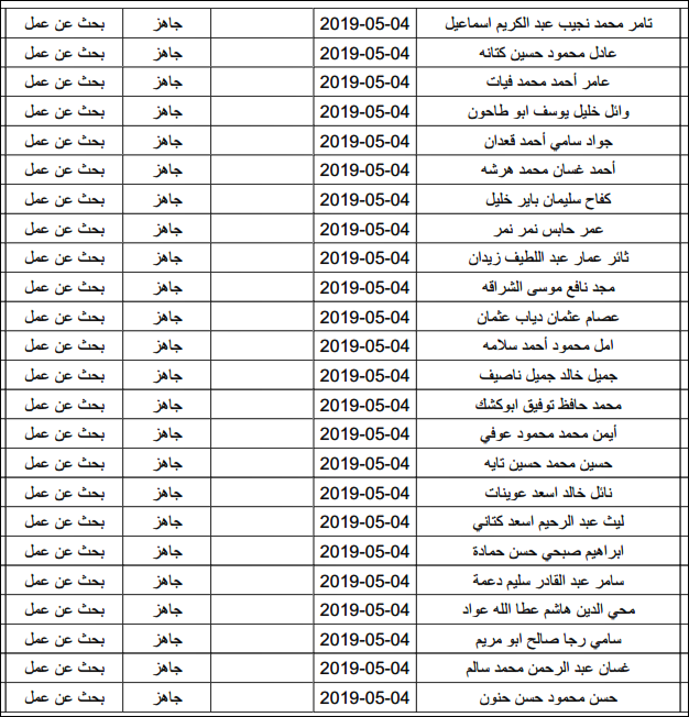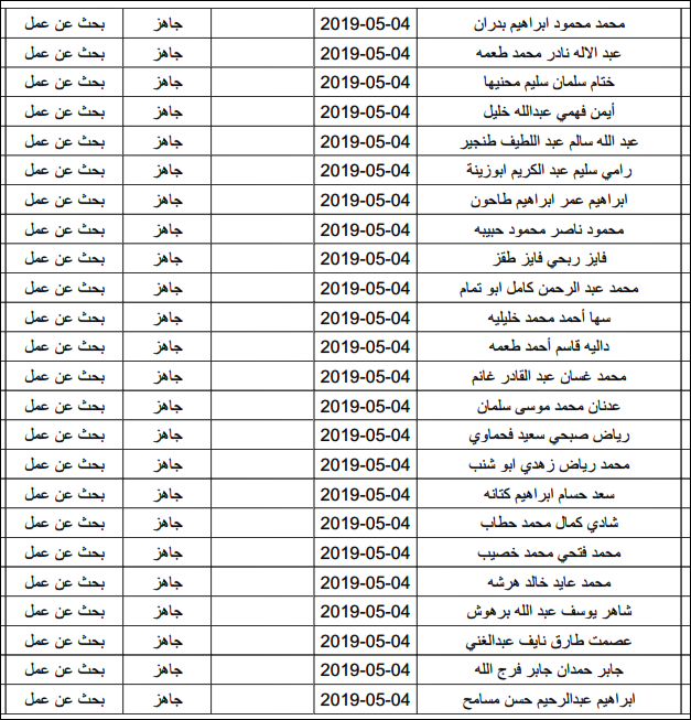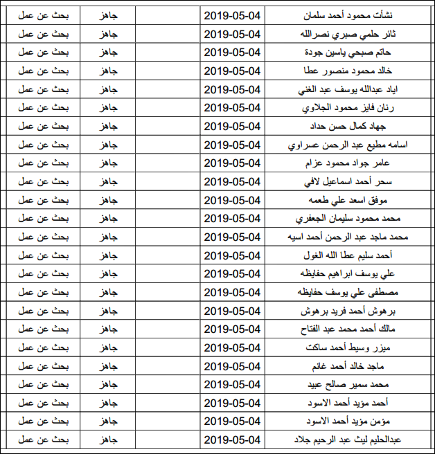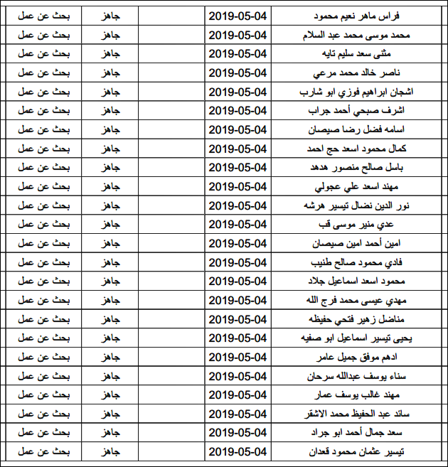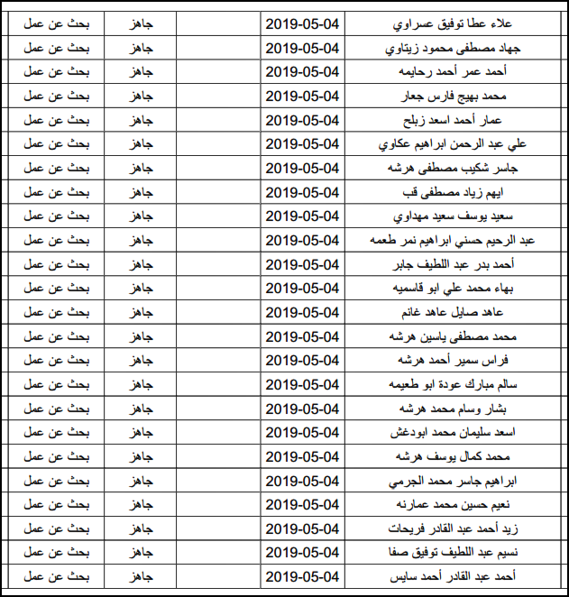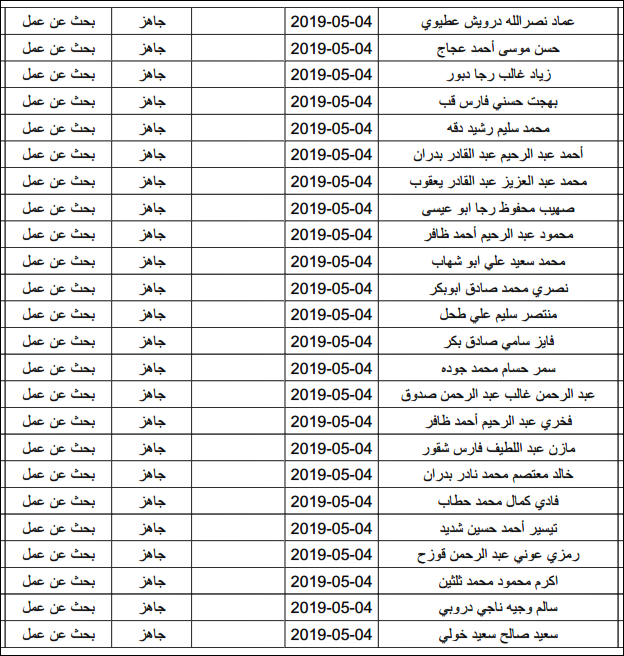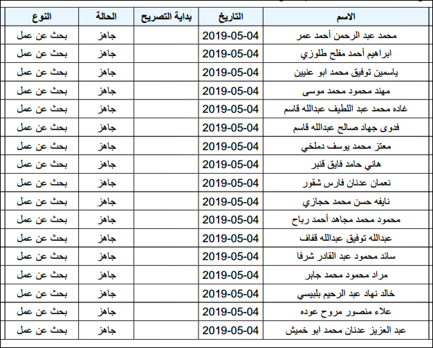 لقد تم استلام تصاريح البحث عن عمل، الأحد 12.05.2019، والتي يبدأ سريان مفعولها من 12.05.2019، حتى 16.05.2019، وسيتم البدء في تسليمها مباشرة من هذه اللحظة.