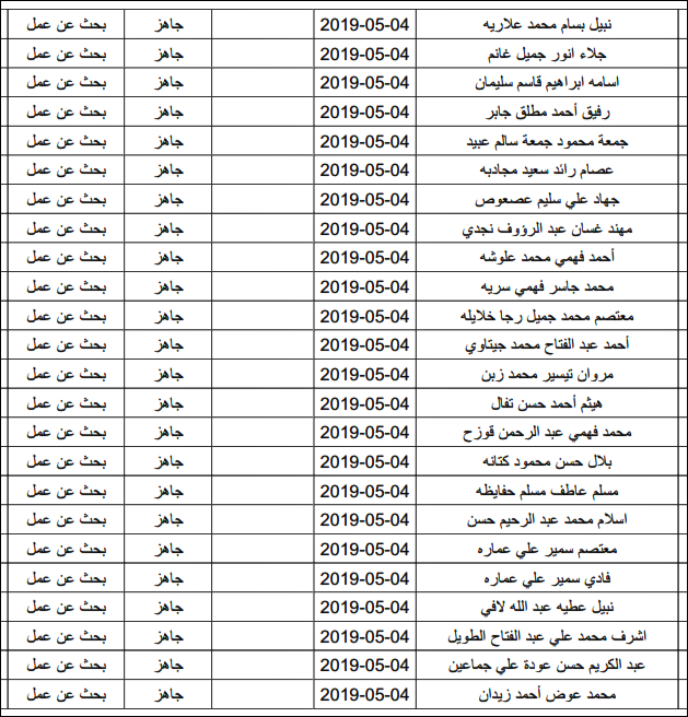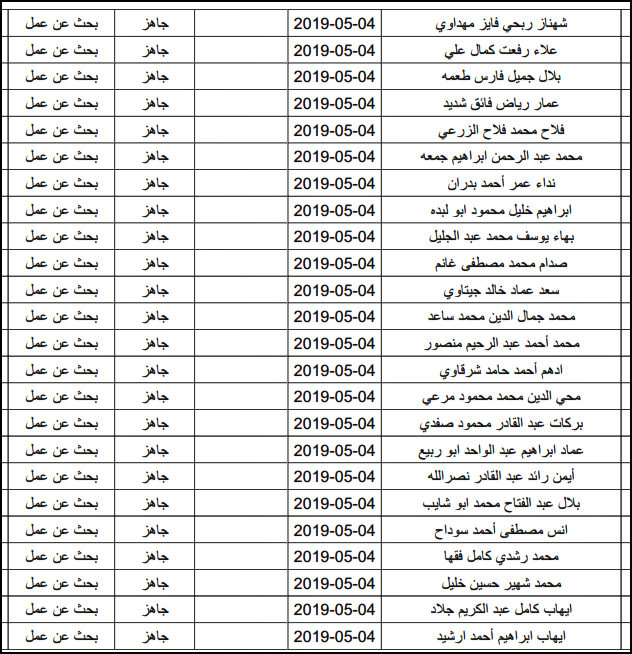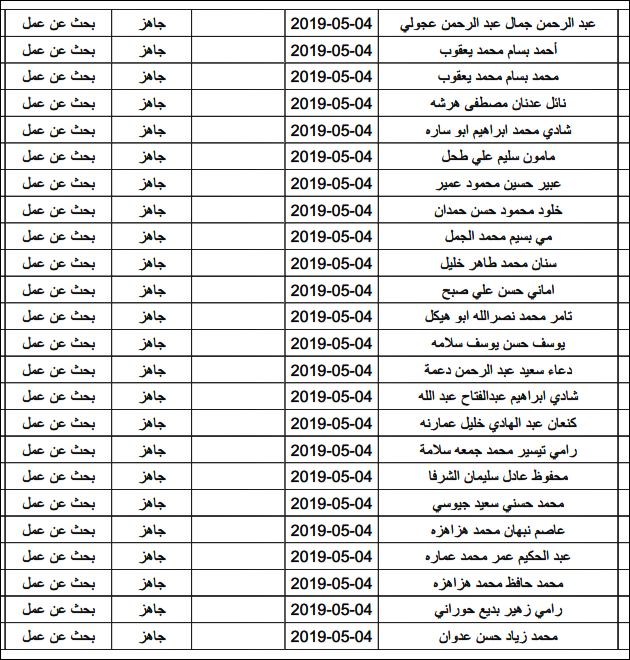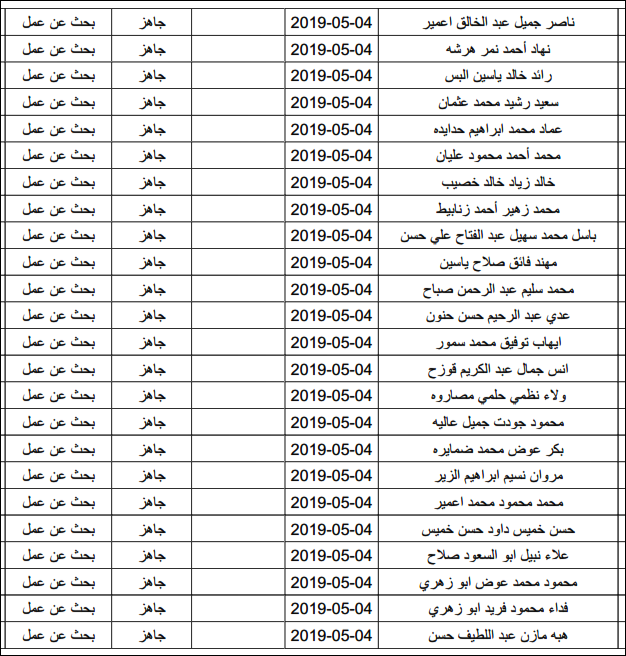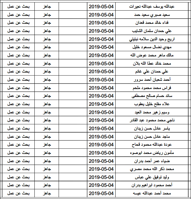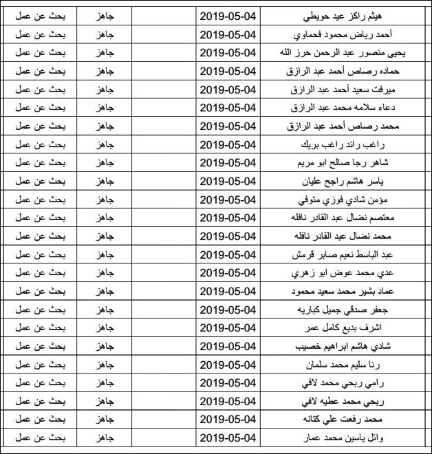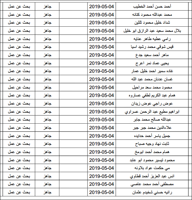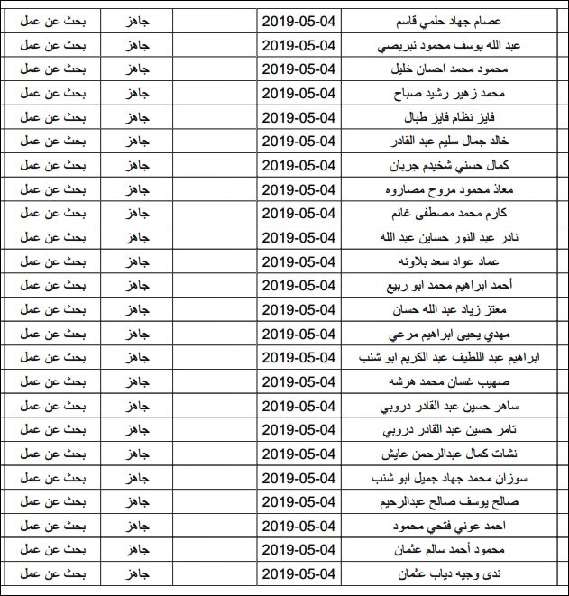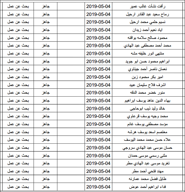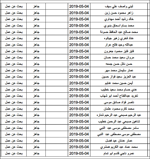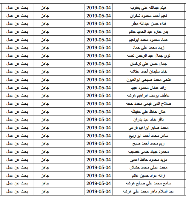 لقد تم استلام تصاريح البحث عن عمل، الأحد 12.05.2019، والتي يبدأ سريان مفعولها من 12.05.2019، حتى 16.05.2019، وسيتم البدء في تسليمها مباشرة من هذه اللحظة.