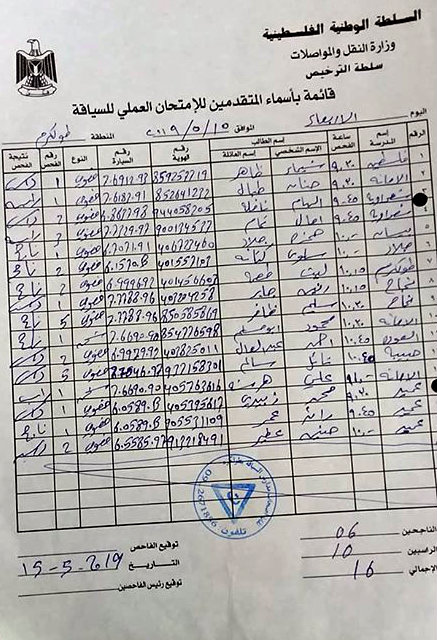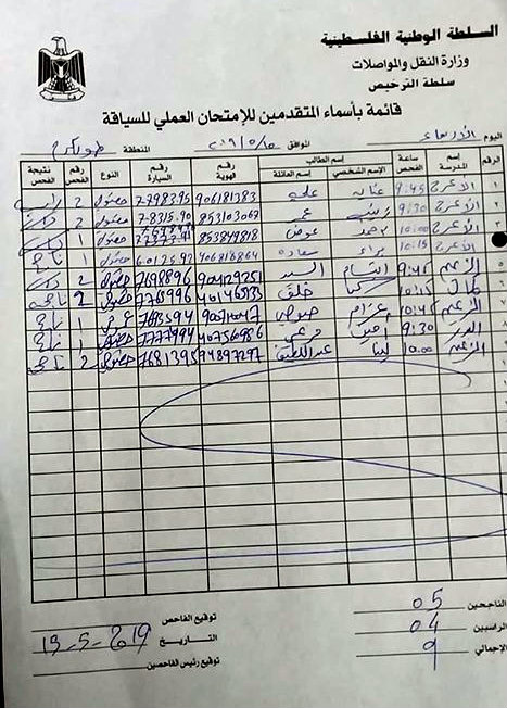 نتائج امتحان السياقة العملي بطولكرم