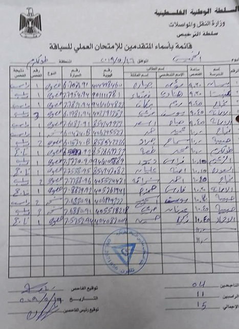 مديرية النقل والمواصلات في طولكرم تنشر نتائج امتحان السياقة العملي.