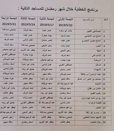 خطباء الجمعة في مساجد طولكرم