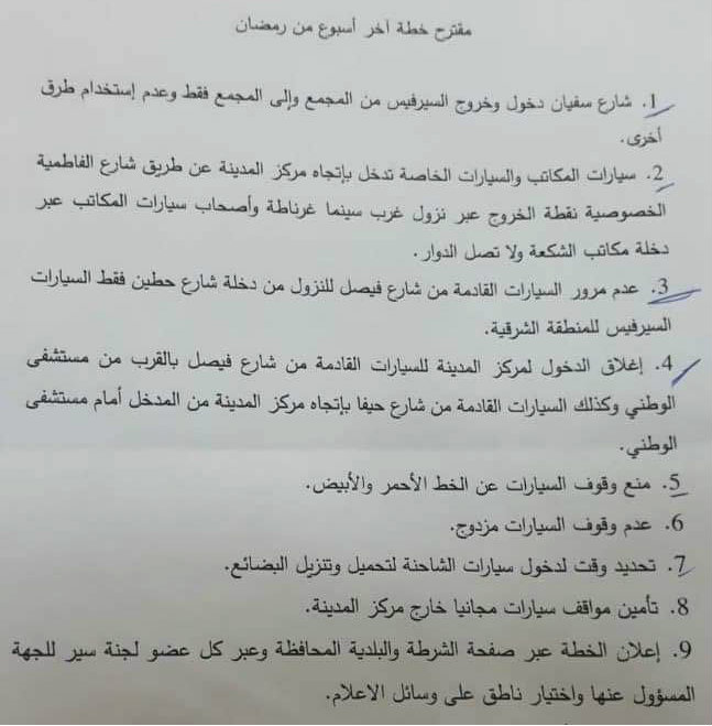 بناءً على اجتماع لجنة السير، تقرر العمل بالبرنامج التالي لتنظيم السير في نابلس اعتباراً من يوم السبت 01.06.2019.