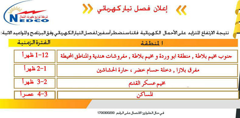 المصدر: شركة توزيع كهرباء الشمال