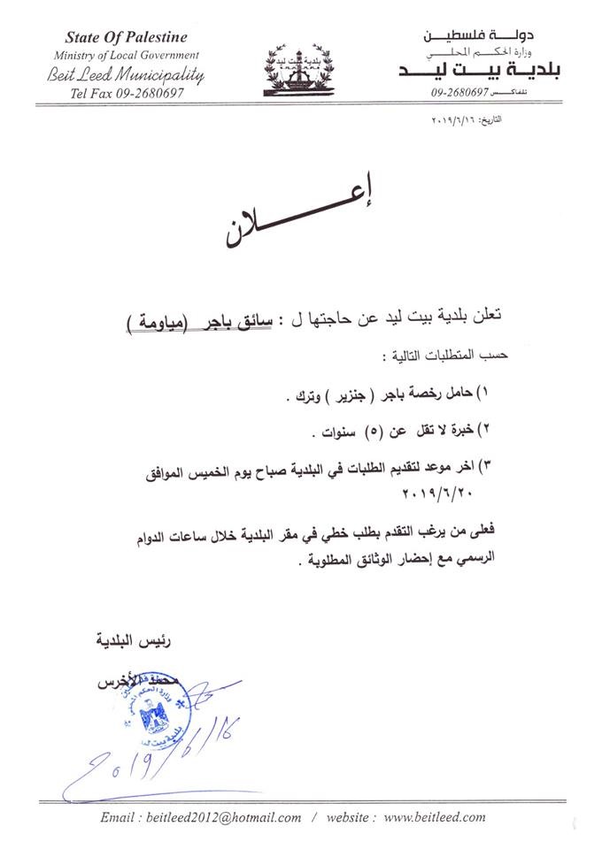 آخر موعد للتقديم هو صباح يوم الخميس الموافق 20.06.2019.