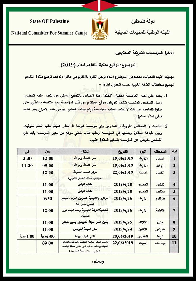 اللجنة الوطنية العليا للمخيمات الصيفية تعلن عن موعد توقيع مذكرات التفاهم في المحافظات.