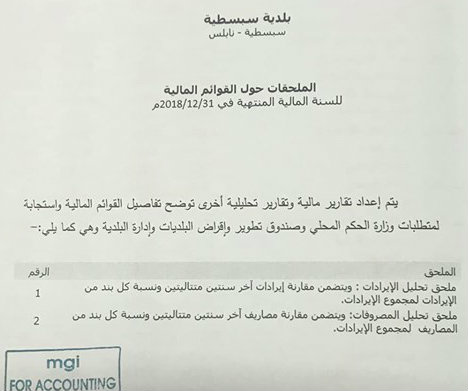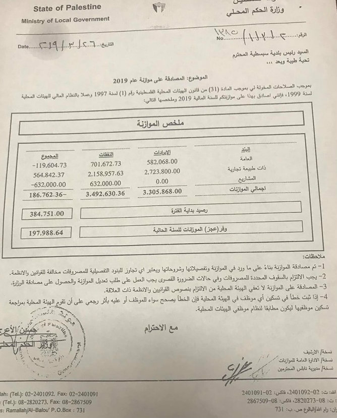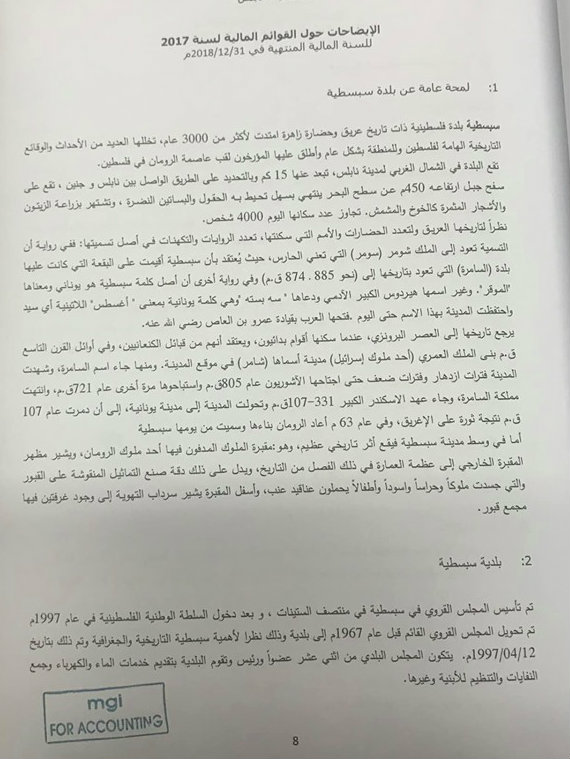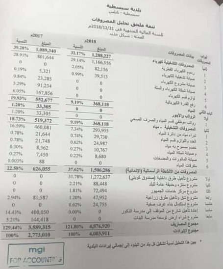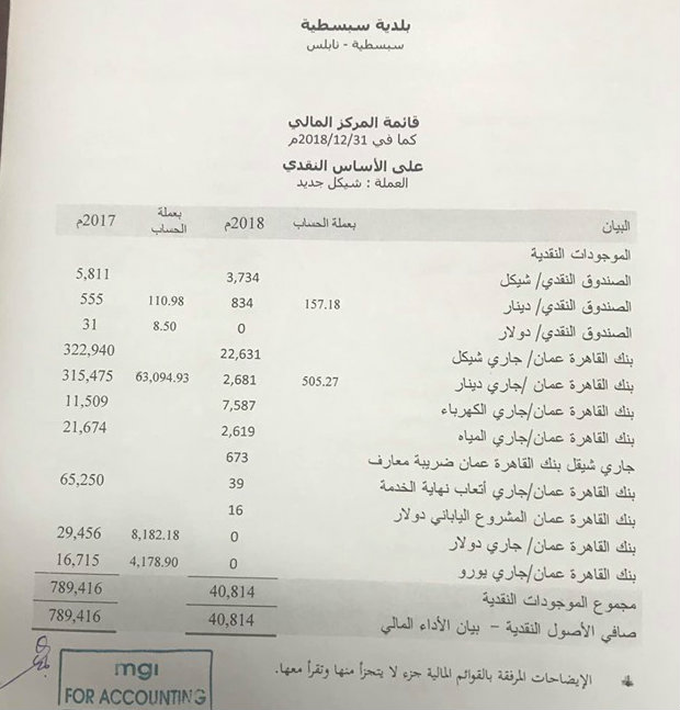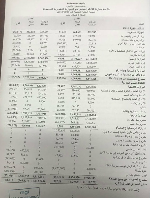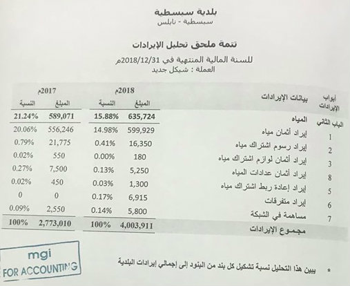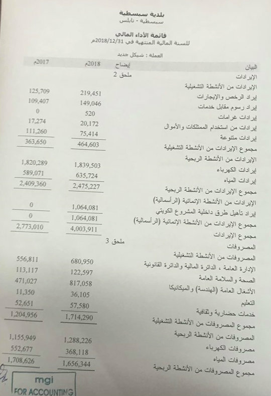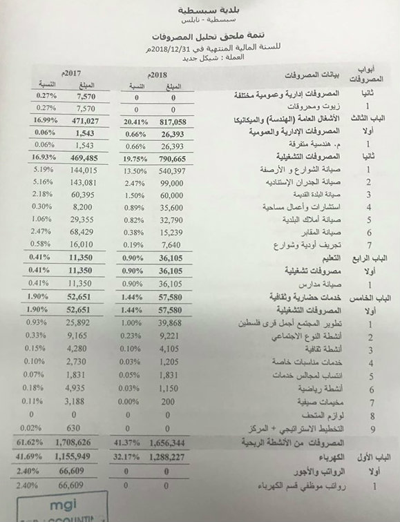 بلدية سبسطية تنشر موازنتها المالية لعام 2018.