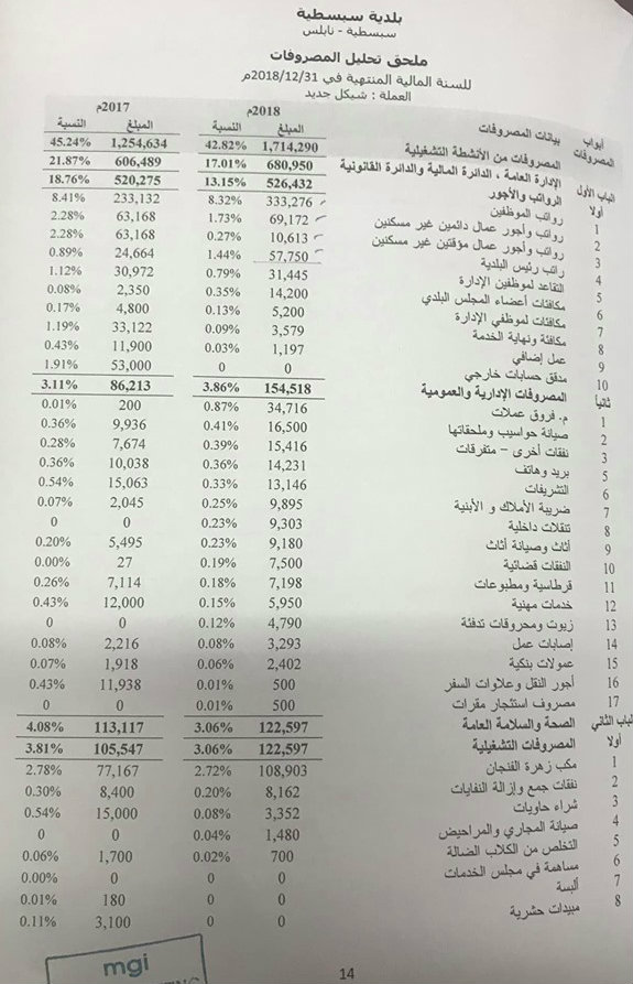 موازنة بلدية سبسطية لعام 2018