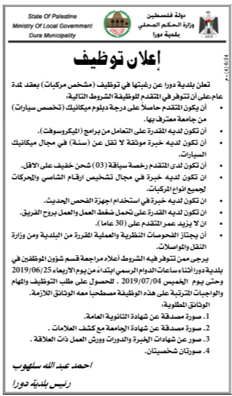 وظيفة شاغرة في بلدية دورا