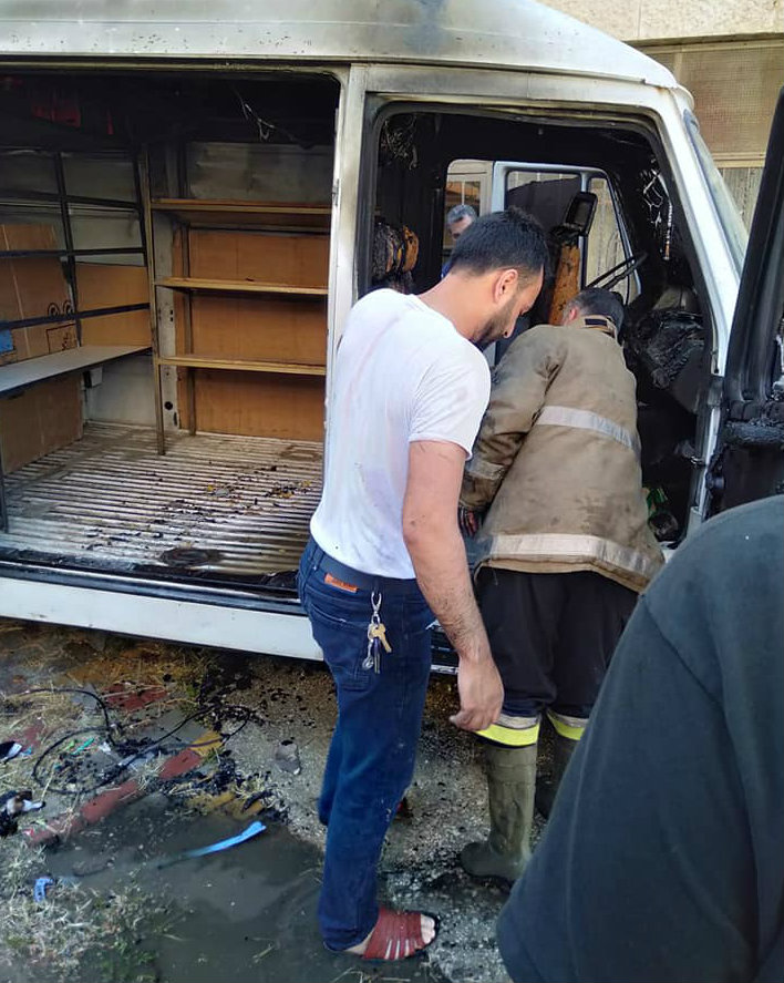 إطفائية بلدية نابلس تسيطر على حريق شبّ في مركبة نتيجة تماس كهربائي.