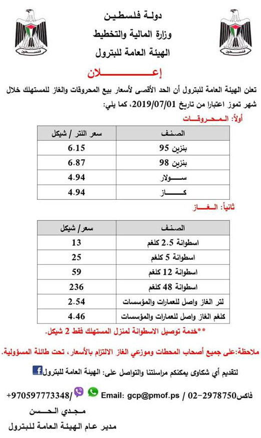 الهيئة العامة للبترول تعلن عن أسعار المحروقات لشهر تموز/ يوليو لعام 2019.