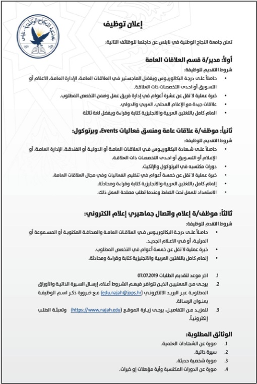 وظائف في جامعة النجاح