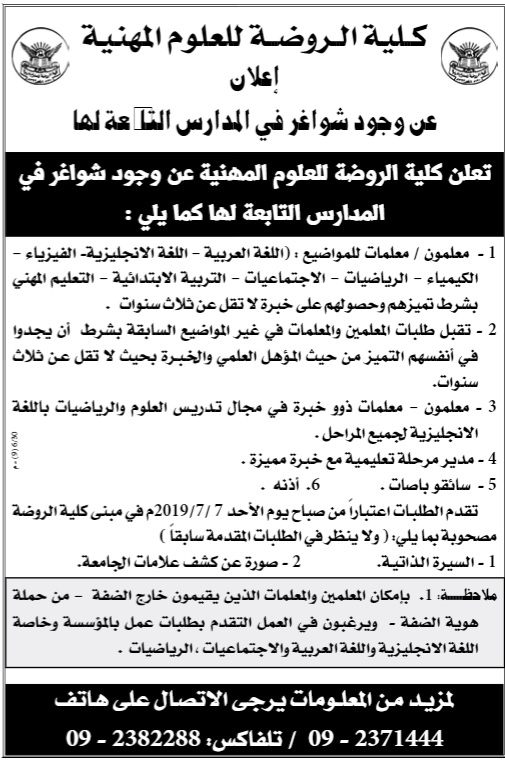 آخر موعد للتقديم يوم الأحد الموافق 07.07.2019.