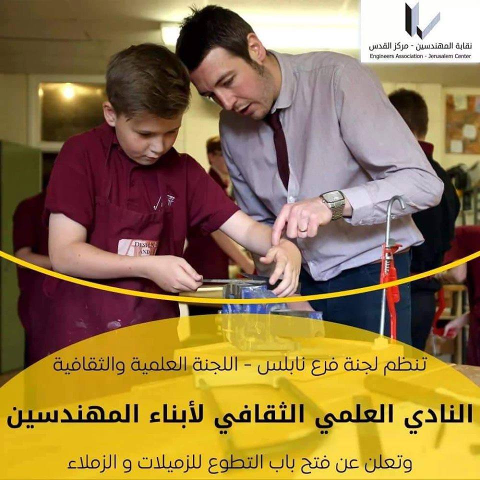 نقابة المهندسين في نابلس تعلن عن إقامة نادٍ علمي هندسي لأبناء المهندسين/ات.