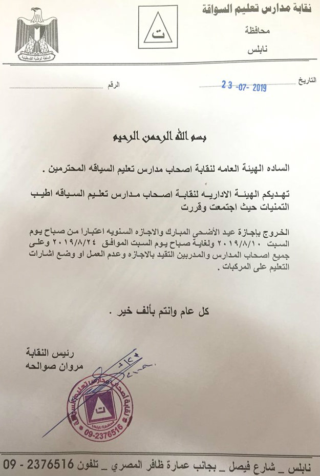 نقابة أصحاب مدارس تعليم السياقة تحدد عطلة عيد الأضحى.