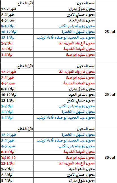 بلدية دير الغصون تنشر مناطق وساعات فصل الكهرباء في البلدة.