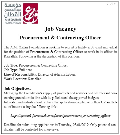 آخر موعد للتقديم هو يوم الخميس الموافق 08.08.2019.