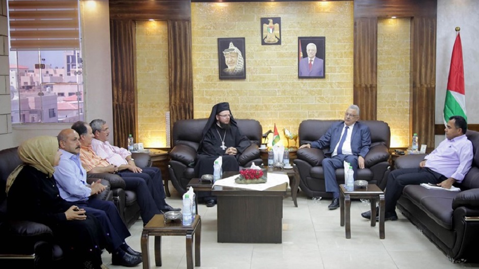 محافظ طولكرم عصام أبو بكر يؤكد على الأخوّة بين المسلمين والمسيحيين في فلسطين أثناء استقباله راعي الكنيسة الأرثوذكسية في نابلس وطولكرم.
