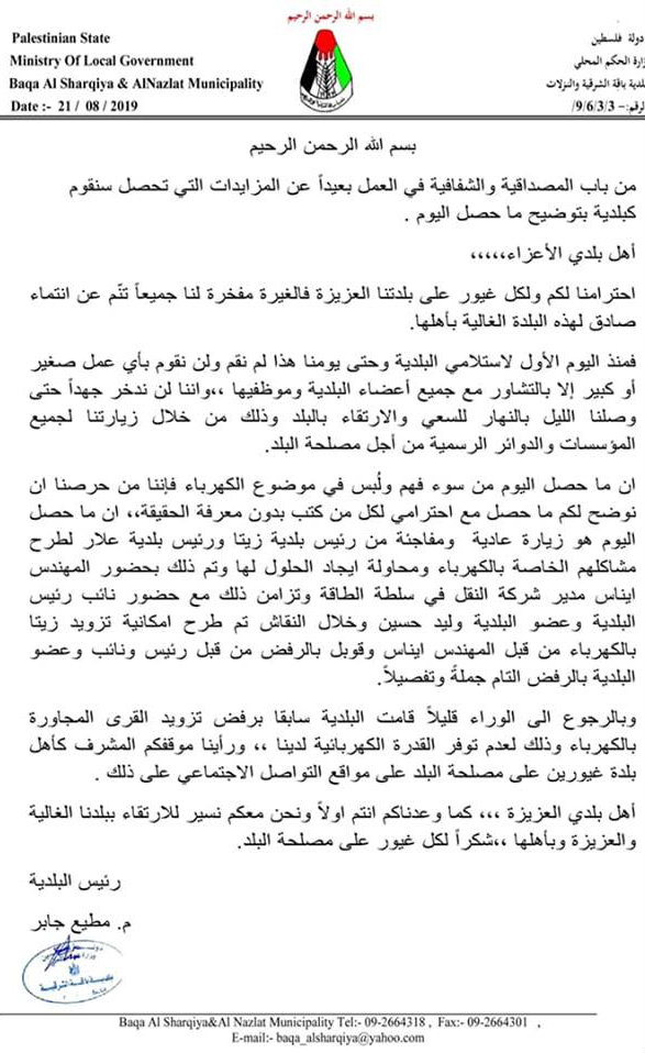 بلدية باقة الشرقية توضح سبب رفضها تزويد القرى المجاورة لها بالكهرباء.