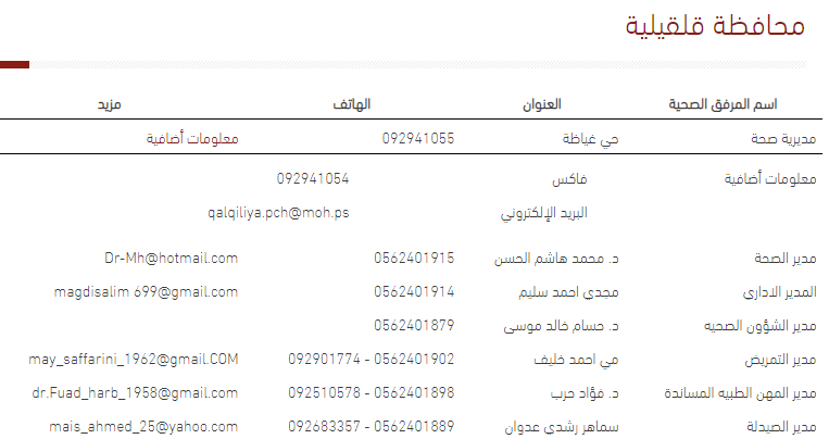وزارة الصحة تنشر خريطة الخدمات لتسهيل التواصل مع المستشفيات ومديرية صحة قلقيلية.
