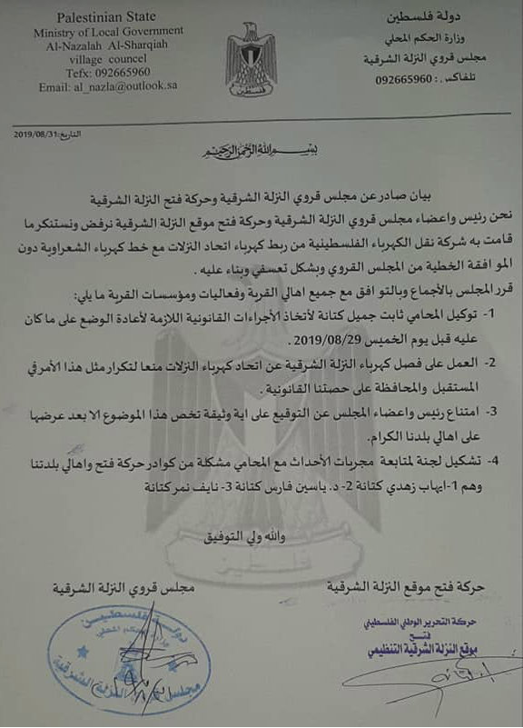 مجلس قروي النزلة الشرقية يعلن عن انفصال خط الكهرباء للقرية عن خط كهرباء الشعراوية ويوضح الأسباب.