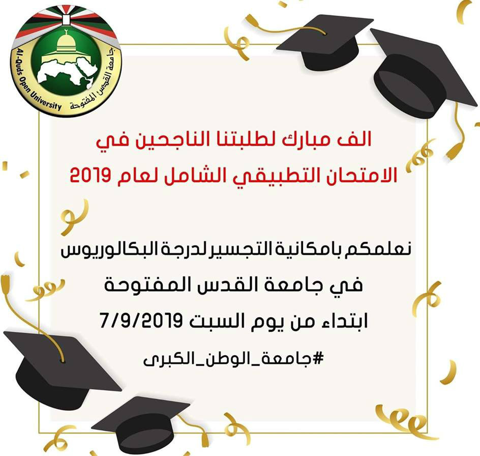جامعة القدس المفتوحة تعلن عن فتح باب التسجيل لبرنامج التجسير للطلبة الناجحين في امتحان الشامل.