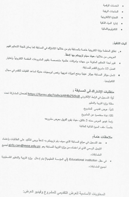 يرجى مراجعة المسابقة والتي تستهدف الفتيات من الصف التاسع الأساسي إلى الصف الثاني عشر والاطلاع بدقة على النشرة قبل التسجيل في المسابقة.