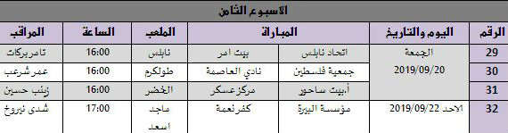 أعلن اتحاد كرة القدم، الثلاثاء 17.09.2019، جدول مباريات الأسبوع الثامن/ مرحلة الإياب موسم 2018/2019 من الدوري النسوي العام والذي جاء كالتالي: