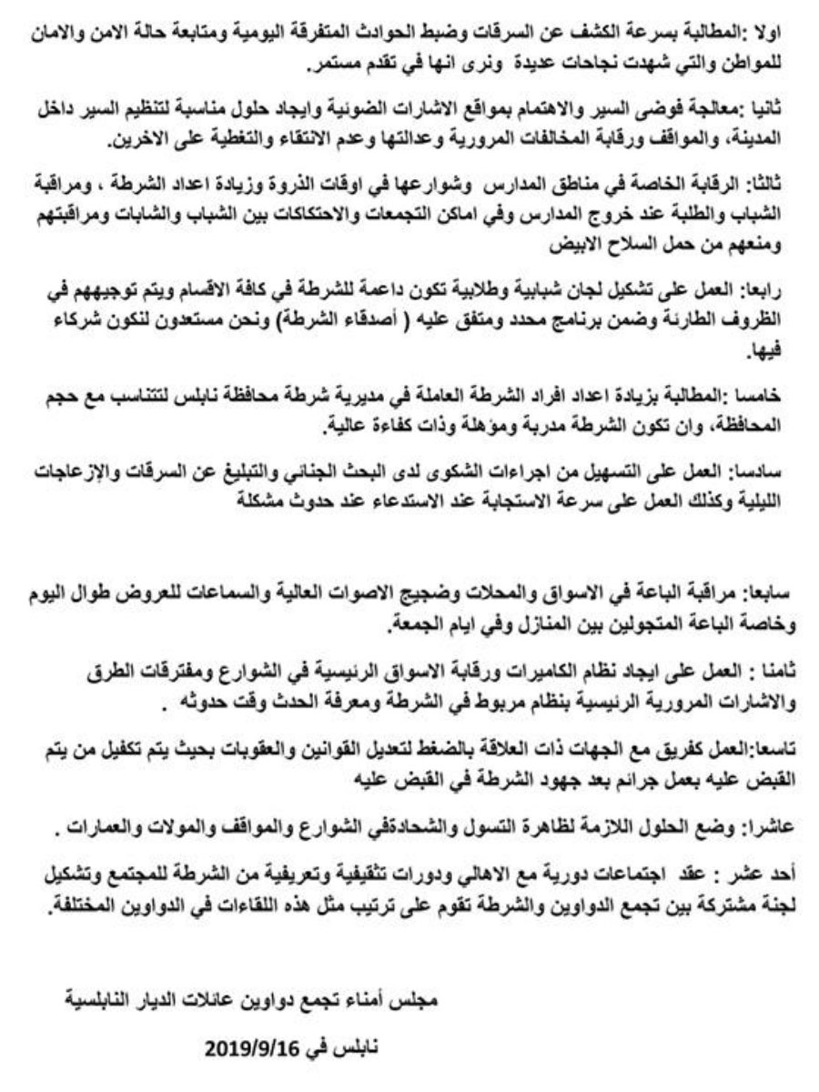 مطالب تجمع دواوين نابلس من الشرطة