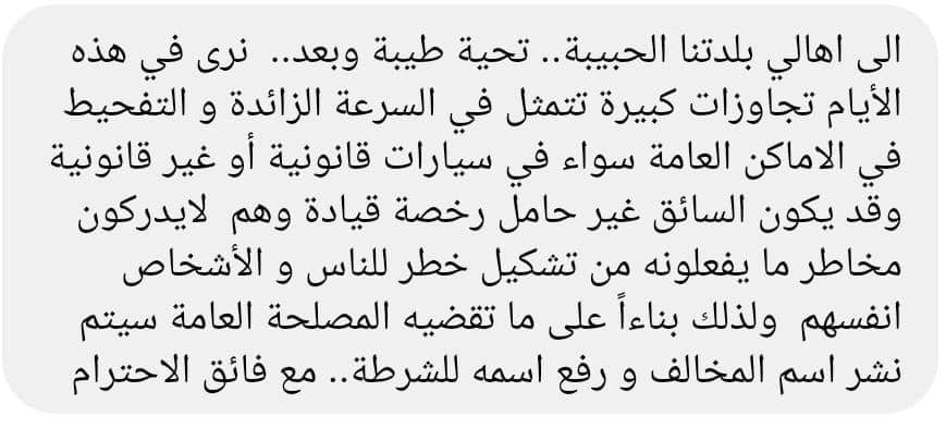 أصدر مجلس قروي الساوية جنوب نابلس، الجمعة 20.09.2019، قراراً باتباع إجراء الكشف عن أسماء المخالفين من سائقي السيارات داخل القرية، دوز ينشر البيان كما هو:
