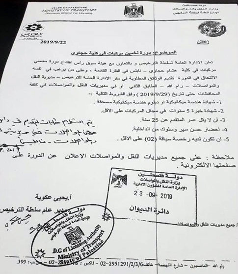 المصدر: مديرية النقل والمواصلات - نابلس