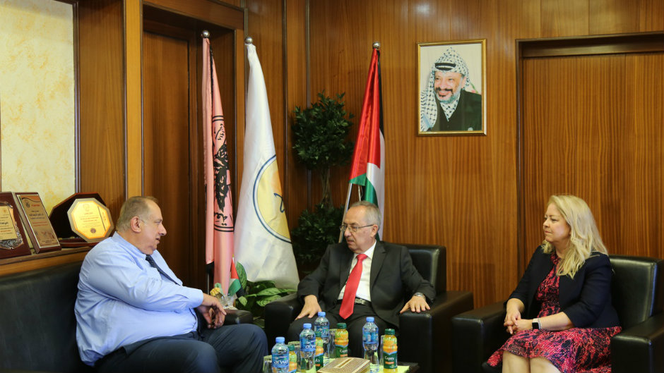 زار وزير التعليم العالي والبحث العلمي محمود أبو مويس جامعة النجاح، الثلاثاء 01.10.2019، والتقى بماهر النتشة رئيس الجامعة وخيرية رصاص نائب الرئيس محمود عباس لشؤون العلاقات الدولية والاستراتيجية.