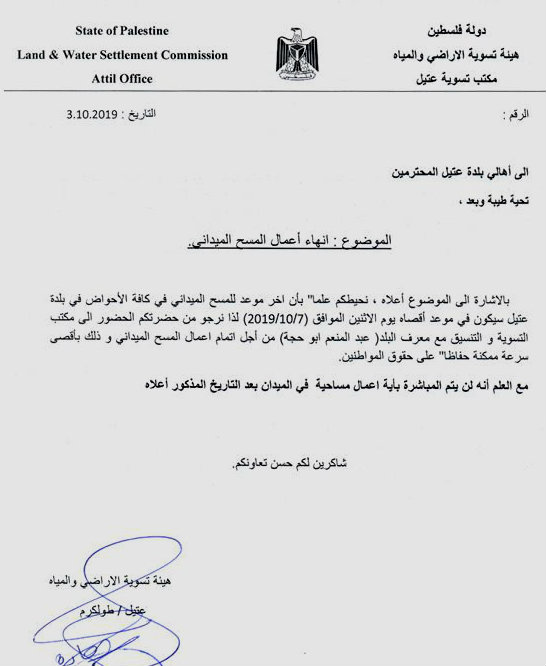 موعد إنهاء المسح الميداني في عتيل