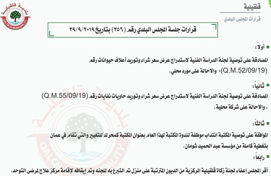 قرارات مجلس بلدي قلقيلية