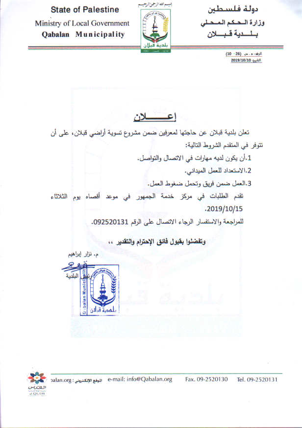 وظيفة في إحدى الشركات الكبرى بنابلس