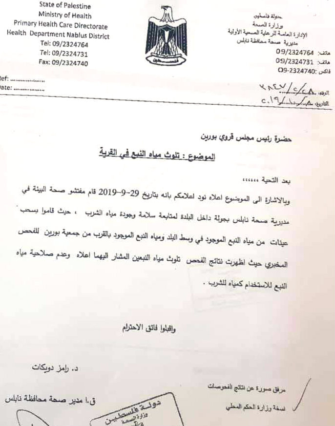 الصحة تؤكد تلوث مياه النبع في بورين والمجلس يحذر من استخدامها.