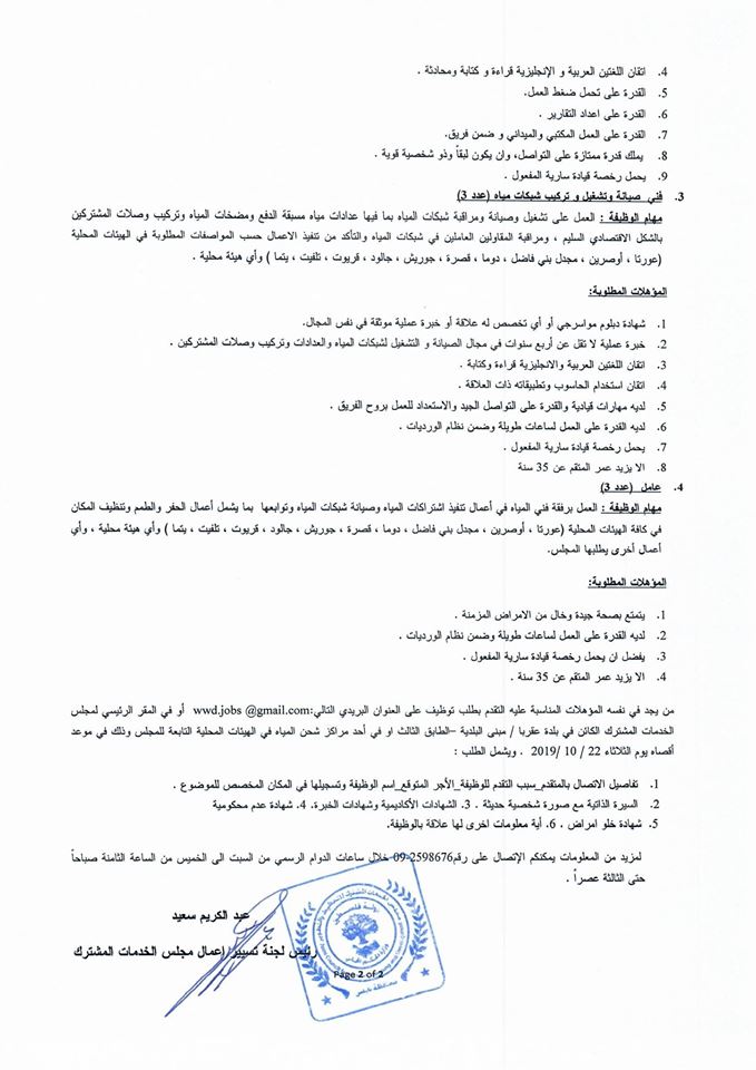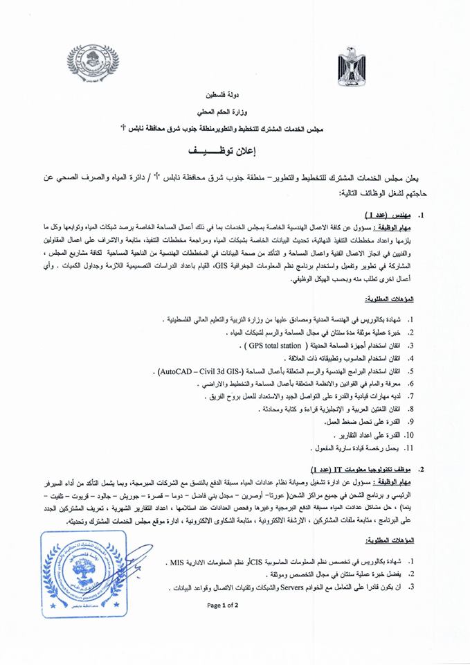 وظيفة شاغرة في مجلس الخدمات المشترك نابلس